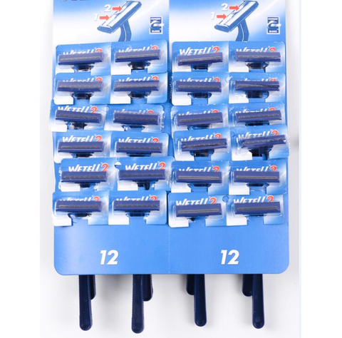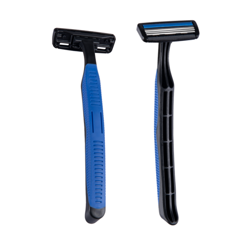 Maquinilla de afeitar desechable con mango de plástico y 2 cuchillas