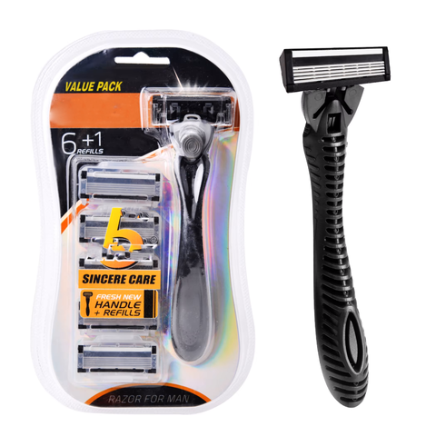 Sistema de maquinilla de afeitar de seguridad desechable de 6 hojas de alta calidad de marca superior, mango de plástico, acero inoxidable, reemplazable para afeitado de Bikini facial