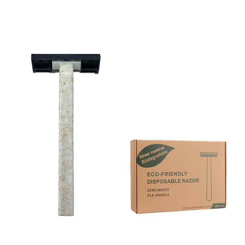 Toptan buğday samanı çevre koruma geri dönüşümlü tek kullanımlık ikiz paslanmaz çelik biyobozunur kolu jilet